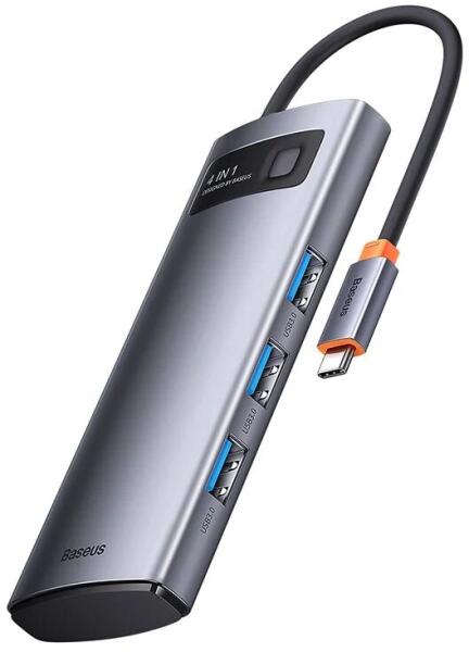 4 az 1-ben elosztó Baseus Metal Gleam sorozat, USB-C - 4x USB 3.0