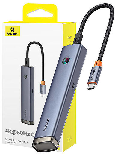 Gyártó: Baseus | Modell: BS-OH164 | Szín Szürke | Anyaga Alumínium ötvözet 6063 | Súly 64 g Méretek: 128,4 x 26 x 16 mm | Interfészek USB-C3.0 x2, USB2.0, HDMI, USB-C PD | Operációs rendszerek Windows, Apple OS, Linux, Vista