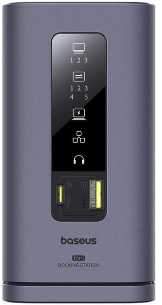 Baseus Spacemate 11v1 dokkolóállomás (USB-C PD, USB-C, 2x USB-A, 3x HDMI) szürke (6932172659066)