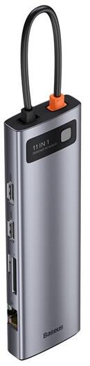 Baseus Type-C HUB 11in1 (aktív, 3 USB+Type-C+RJ45+2 HDMI+VGA+3.5mm jack, SD/microSD kártyolvasó) SÖTÉTSZÜRKE CAHUB-CT0G (CAHUB-CT0G)