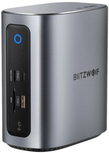 BlitzWolf BW-TH15 17 az 1-ben dokkolóállomás 2xHD+DP+4xC+3xUSB 3.0+USB 3.1+C 3.2+C PD+RJ45+micro SD+SD+3.5mm audio - pepita