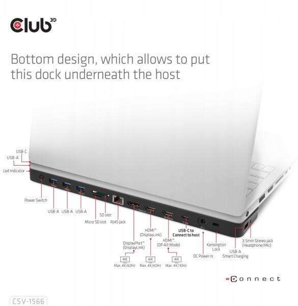 Club 3D CSV-1566 dokkolóállomás, USB-C, HDMI, USB 3.2 Gen 1 (8719214472092)