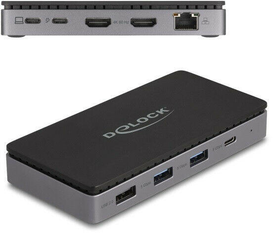 Delock USB Type-C dokkolóállomás 4K - hoz kettős HDMI MST / USB / Gibabit LAN / PD 3.0 85 W (88271) (88271) - pepita