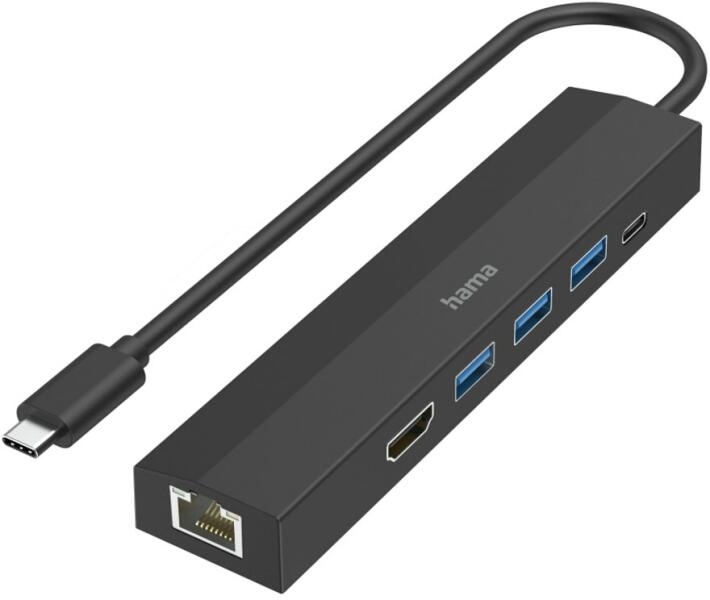 Hama 3xUSB-A, USB-C, HDMI, LAN csatlakozós hub, USB-C kábellel fekete (00200144) (00200144)