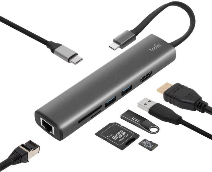 Home USB-C Dokkoló Állomás: Bővítsd ki eszközeid csatlakozási lehetőségeit! ? Ezzel a sokoldalú dokkoló állomással könnyedén kibővítheted laptopod, tableted vagy okostelefonod csatlakozási lehetőségeit. Egyszerűen csatlakoztathatsz számos eszközt egyetlen USB-C porton keresztül. Főbb jellemzők: ? 4K HDMI HDR támogatás: Élvezd a lenyűgöző képminőséget külső monitoron vagy TV-n. ? Gigabit Ethernet port: Stabil és gyors vezetékes internetkapcsolat. ⌨️?️ USB portok: Csatlakoztass egeret, billentyűzetet, pendrive-ot és más USB eszközöket. ? SD/TF kártyaolvasó: Könnyedén hozzáférhetsz fényképeidhez és videóidhoz. ⚡ 100W Power Delivery (PD): Töltsd laptopodat vagy tabletedet a dokkoló állomáson keresztül. Plug & Play: Nem igényel illesztőprogramot, csak csatlakoztasd és használd! Csatlakozók: 1 x HDMI (4K HDR) 1 x Gigabit RJ45 Ethernet 3 x USB 3.0 1 x USB-C (Power Delivery) SD kártyaolvasó MicroSD (TF) kártyaolvasó Kompatibilitás: Windows macOS Linux A prémium alumínium burkolat nem csak stílusos megjelenést kölcsönöz, hanem tartós védelmet is biztosít a dokkoló állomásnak. Akár otthon, akár az irodában használod, a Home USB-C dokkoló állomás ideális megoldás a perifériák csatlakoztatására és a hatékony munkavégzésre. ✨
