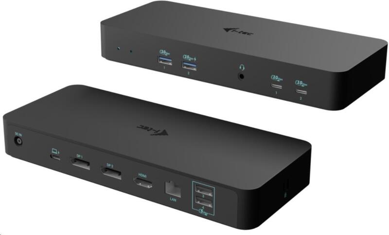i-tec USB-C intelligens hármas kijelző dokkolóállomásPower Delivery 100WEAN: 8595611707537 LeírásNagy teljesítményű dokkolóállomás a távoli irányításhoz. Alkalmas modern laptopokhoz USB-C, USB4 vagy Thunderbolt 3/4/5 csatlakozóval. Részletes leírásAz állomás 60 Hz-ig támogatja a 4K felbontást. Akár 100 W teljesítményt biztosít a csatlakoztatott eszközök táplálásához. 6× USB-port USB-eszközök és perifériák csatlakoztatásához (2× USB-C és 4× USB-A). Intelligens LAN Ethernet a rendkívül gyors 10/100/1000/2500 Mbps sebességű kapcsolatokhoz. 3,5 mm-es audio/mikrofon port beépített mikrofonnal rendelkező fejhallgató csatlakoztatásához. A VESA rögzítési támogatásnak köszönhetően függőlegesen a monitor mögé szerelhető. Műszaki adatokTechnológia: USB-C DP Alt üzemmódUSB-C Power DeliveryTeljesítmény: 100 WVideokimenetek: 1× HDMI, 2× DisplayPortUSB portok: 6× (2× USB-C, 4× USB-A)Ethernet: RJ-45 (1 Gbps)Hang: hangcsatlakozó: Kombinált 3,5 mm-es audiocsatlakozóBiztonság:Kensington zárFelszerelés: támogatja a VESA felszereléstOperációs rendszerek: Windows 10/11, macOS, Android, iPadOS, ChromeOS, LinuxA csomag tartalmaTermékUSB Type-C Type-C kábel (100 cm)Tápegység (egyenáramú kábel 120 cm, hálózati kábel 150 cm)Kézi