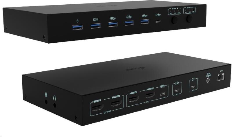 i-tec USB-C KVM dokkolóállomás 3 hosthoz, kettős kijelző, Power Delivery 1x 92W/2x 65W (C31KVMDOCKPDPRO)