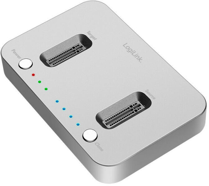 LogiLink Két M. 2 NVMe SSD dokkolóállomás, offline klónozási funkció, USB 3.2 Gen 2, ezüst (QP0033) - pepita