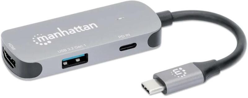Manhattan dokkolóállomás USB-C 3in1, 1xHDMI, 1xUSB-C, 1xUSB, 1xUSB, szürke (190299)
