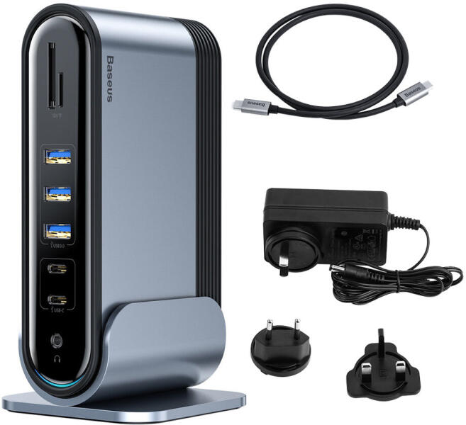 Baseus 16 az 1-ben Multifunkcionális Dokkoló Állomás: A tökéletes megoldás a csatlakozási problémákra! ? ?️ ? Ez a Baseus dokkoló állomás egy igazi svájci bicska a digitális eszközök világában. Akár 4 monitort is csatlakoztathatsz, rengeteg USB portot kapsz, és még kártyaolvasó is van benne! Ideális választás azok számára, akik egyszerre több eszközt szeretnének használni és egy rendezett munkaállomásra vágynak. Főbb előnyök:Bővítsd a portjaid számát: 16 különböző bemenettel rendelkezik, így soha nem kell kompromisszumot kötnöd. Nagy sebességű adatátvitel: Az USB 3.0 portoknak köszönhetően pillanatok alatt átmásolhatod a fájljaidat. 4K Ultra HD élmény: Élvezd a lenyűgöző képminőséget akár 4 monitoron is. Gyors töltés: A 100W-os Power Delivery (PD) támogatásnak köszönhetően pillanatok alatt feltöltheted laptopodat. Stabil internetkapcsolat: A beépített RJ45 port garantálja a gyors és megbízható hálózati kapcsolatot. Csatlakozók és portok: | Port típusa| Mennyiség | Leírás