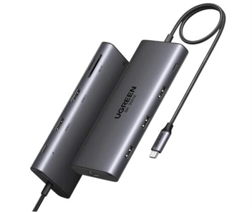 UGREEN Dokkoló állomás 10 az 1-ben, Dual Display, HDMI, Ethernet, 8K@30Hz, USB 3.0 HUB, 100W, SD card, szürke (15534)