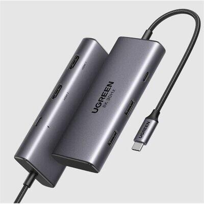 UGREEN - Dokkoló állomás 6 az 1-ben, 8K@30Hz, Dual Monitor, USB HUB, Dual HDMI 2.0 és 2.1, 2x USB-A, USB-C, 100W - Szürke - 15852 (15852)