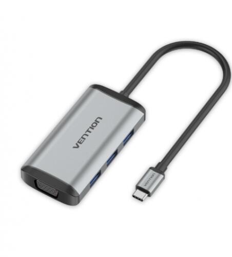 Vention USB-C -> HDMI/VGA/USB3.0*3/PD 0, 15m, (szürke, fémszerű), Dokkoló - patronbolt